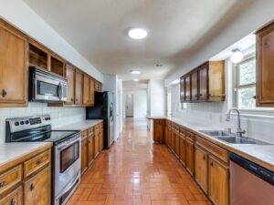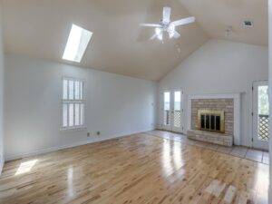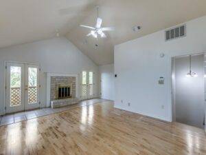 Beyond the bedrooms, two spacious living areas extend the sense of openness. Each comes with custom solid wood built-ins, providing character and functionality. These built-ins offer storage, display options, and a sense of craftsmanship that feels rare in today’s market. It is the kind of detail that suggests this house has been curated with care rather than assembled without thought.