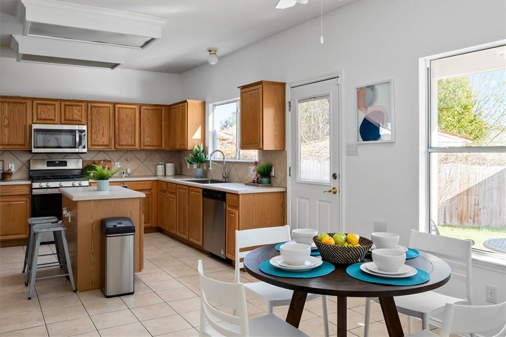 1413 Terra St, Round Rock, Texas 78665 Welcome to your new home! This HUGE 3085 square foot two-story home is located in the Indian Ridge community. The floor plan of this house has four bedrooms and two bathrooms all upstairs with a 3rd living/game area also located upstairs. The master suite includes a large walk in closet, garden tub, and separate shower. Relax by the fireplace or cook up some delicious meals in this kitchen that features all new stainless steel appliances including a dishwasher and range/oven combo that operates on gas instead of electricity! Enjoy your 2020 high efficiency washer and dryer as well as the Rachio 3 controller for your smart sprinkler system all included with the sale. This property also has a security camera system with 3 interior cameras and door sensors as well as motion sensors installed throughout the house so you can always feel safe within these walls. A french drain system was installed in 2020 and the entire interior of the home and garage were painted in November 2021.