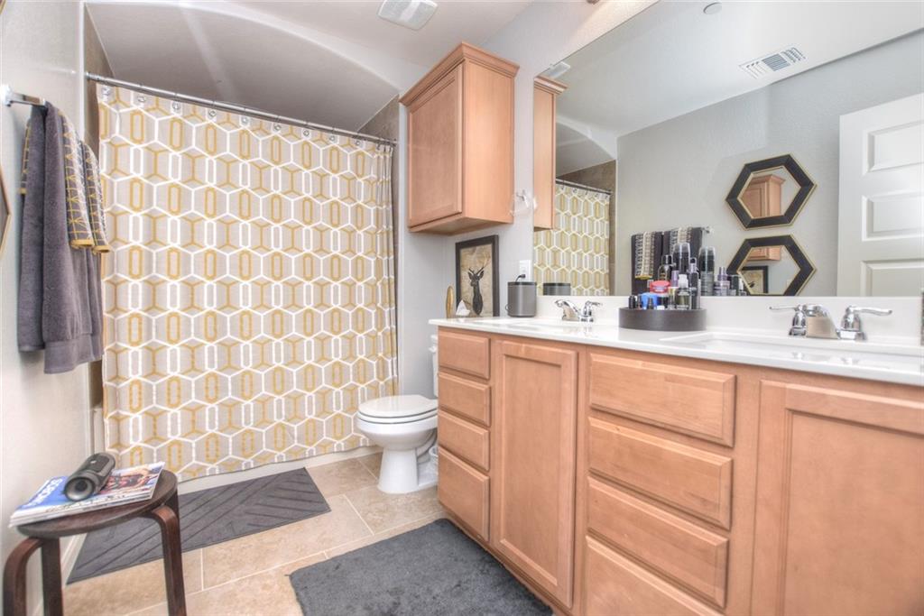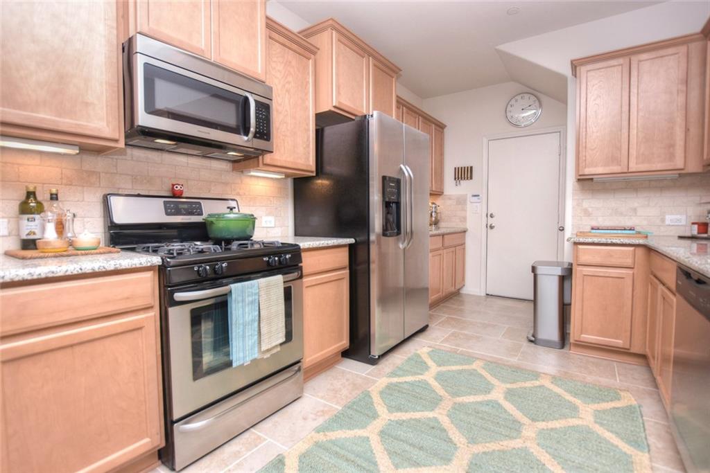 1620 Bryant Dr #2305, Round Rock, Texas 78664: Impeccable condo with 2 master suites is located popular area with easy access to highways, shopping and dining choices. This unit features a spacious and open floor plan, upgraded lighting fixtures, natural light, granite countertops, tile flooring and backsplash, gas stove, expansive cabinetry and counter space. The upstairs laundry is convenient to the dual master suites. Fire alarm and sprinklers, additional storage area in back master closet. Community pool, dog park and trails.