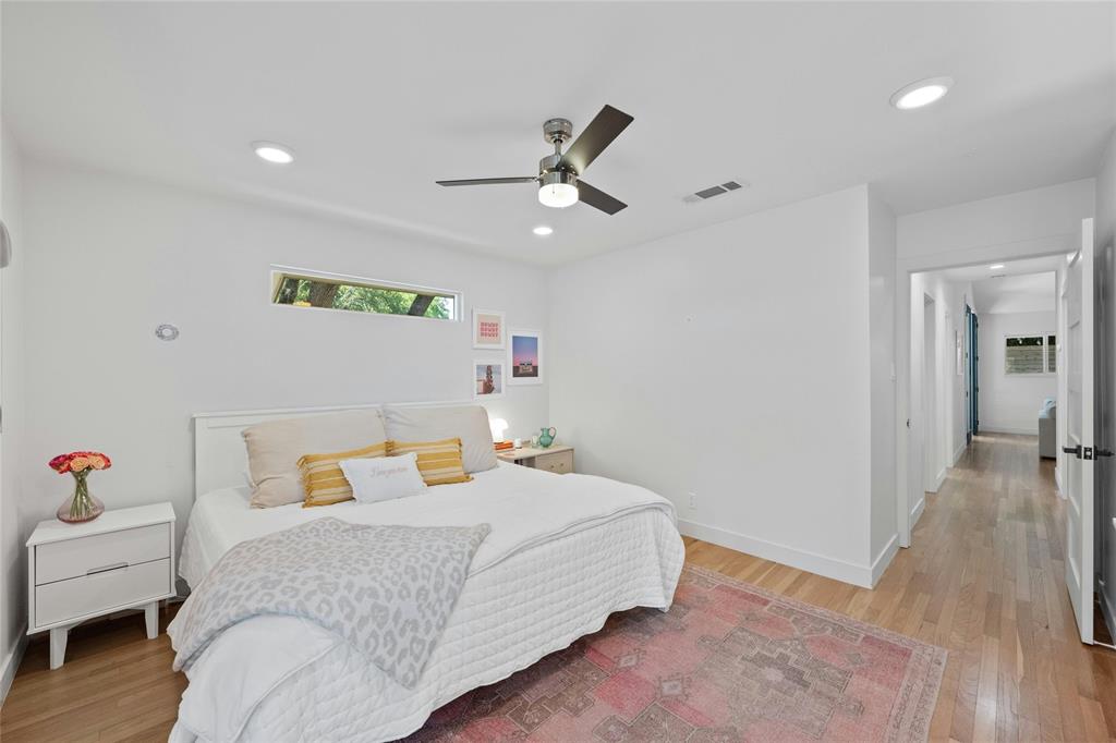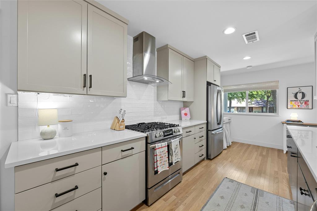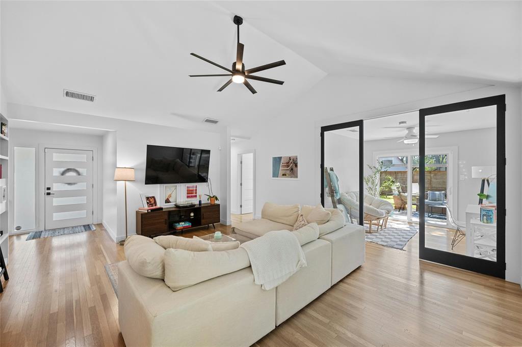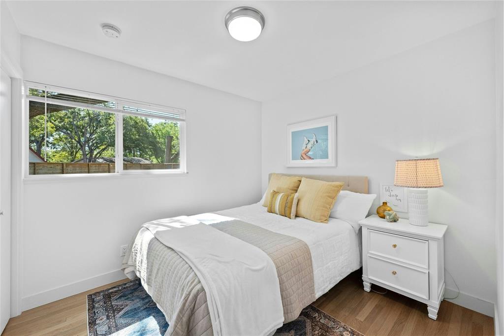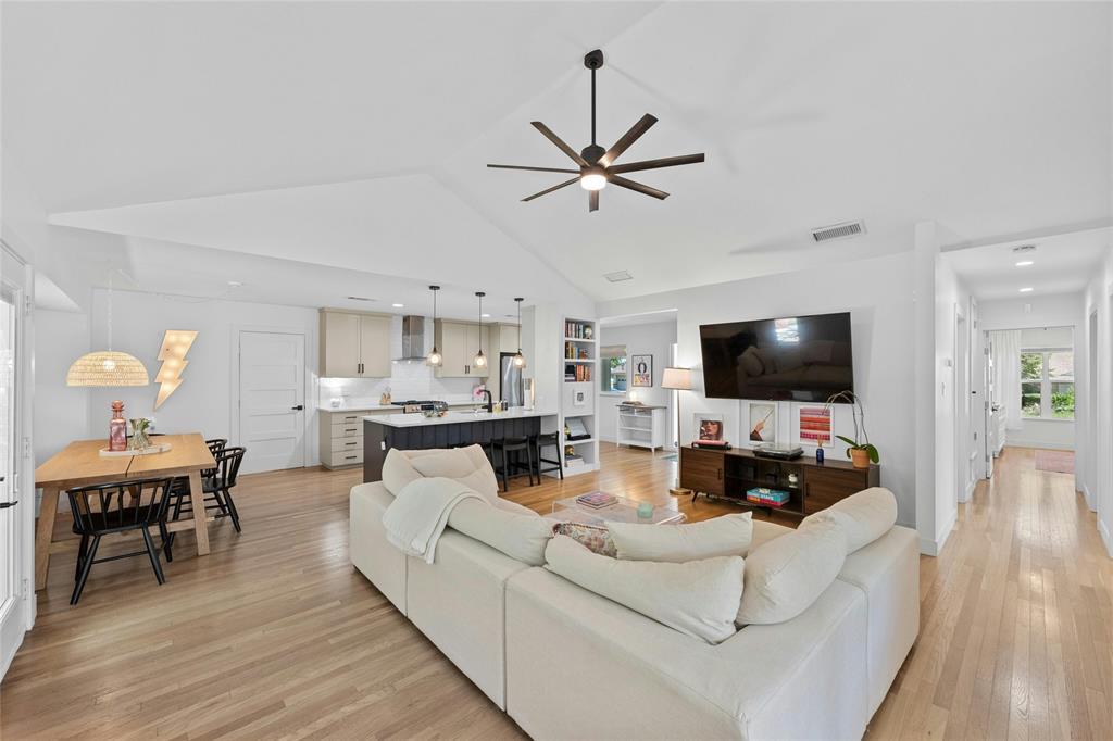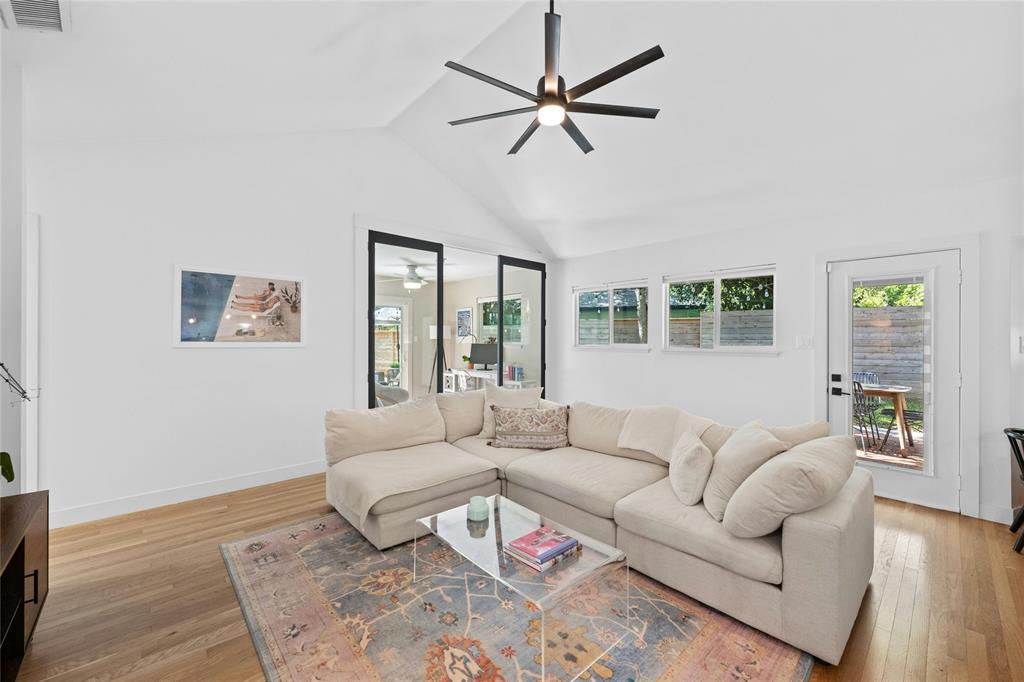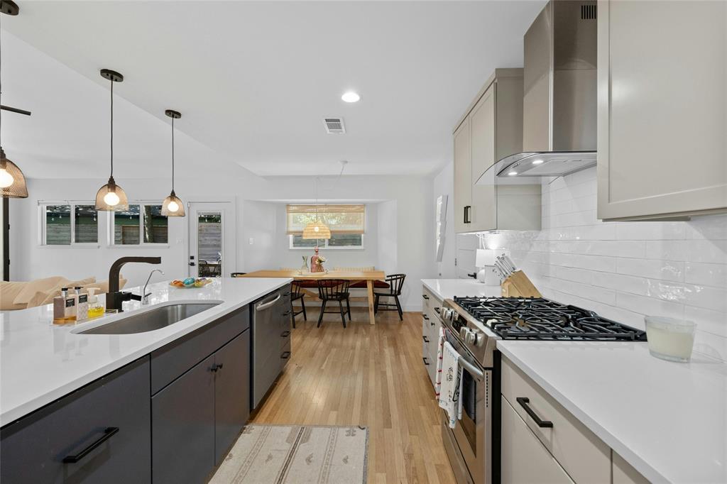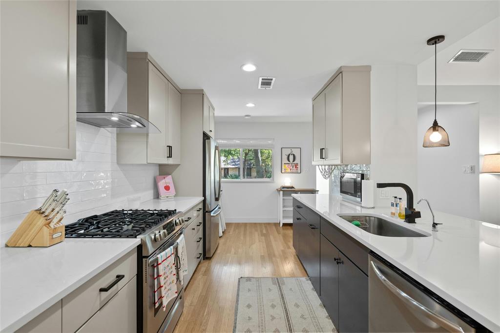 1921 Parkside Ln, Austin, Texas 78745: Welcome to this beautifully remodeled, move-in-ready South Austin home on an oversized .21-acre corner lot with 23 fabulous, well-manicured trees. Updated in 2019, the stunning interior includes an open, gourmet kitchen featuring stainless steel appliances, quartz countertops, and custom cabinetry with a built-in bar/desk area. The large living room includes vaulted ceilings and fabulous natural lighting. The primary bedroom offers a spa-like bathroom with dual sinks, a walk-in shower, and a custom walk-in closet. Additional upgrades include recent hardwood flooring, 5-panel wood doors with matte black hardware, and modern lighting. Energy-efficient features like a Nest Thermostat, tankless water heater, blown-in insulation, dual-paned windows, Pella sliding doors, and whole-home surge protection add value. A versatile flex room with glass-paneled walls can serve as an office, play area, workout space, or a cool home den/library. The large laundry/mudroom with backyard access provides extra storage and could double as a second office/craft space. The wrap-around backyard features multiple patios, mature landscaping, cafe lights, fabulous trees, and a privacy fence, perfect for relaxing or entertaining. A sprinkler system and gutters are also installed. Located steps from Garrison Park, local coffee shops, restaurants, fun beer gardens, and amenities like HEB and Southpark Meadows, this home offers a peaceful setting with easy access to Downtown Austin, the University of Texas, and local schools. Experience modern comfort in a prime South Austin location. Buyer should verify all listing information, including but not limited to school information, taxes, room dimensions, and square footage.