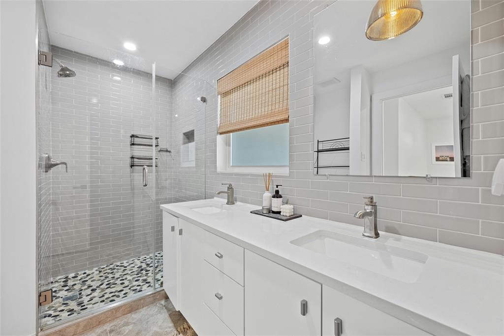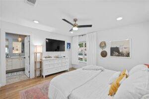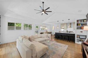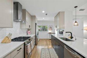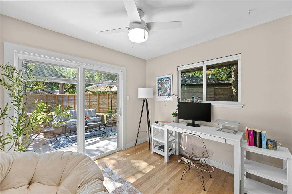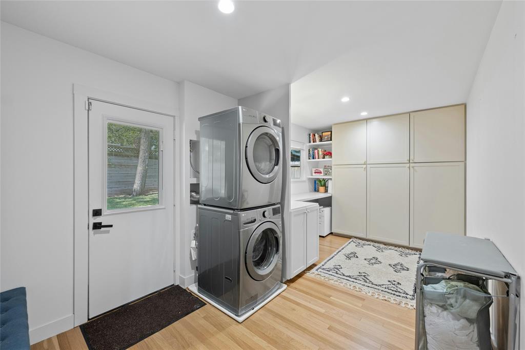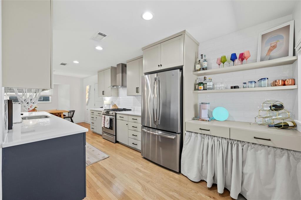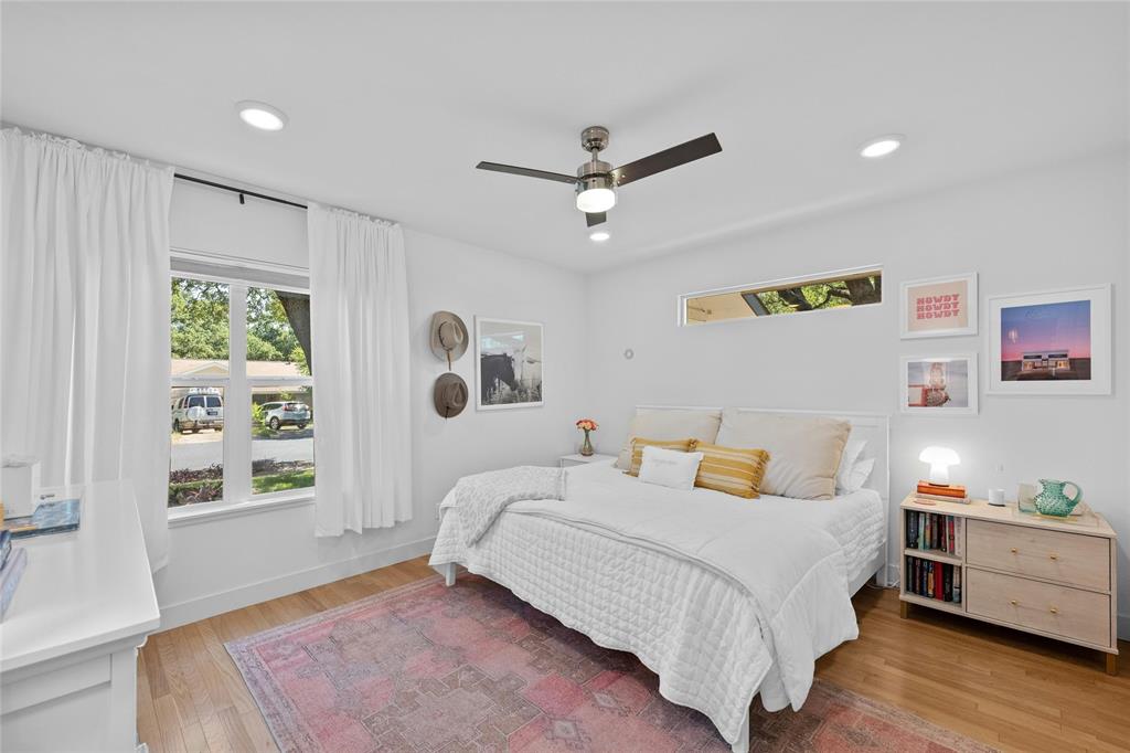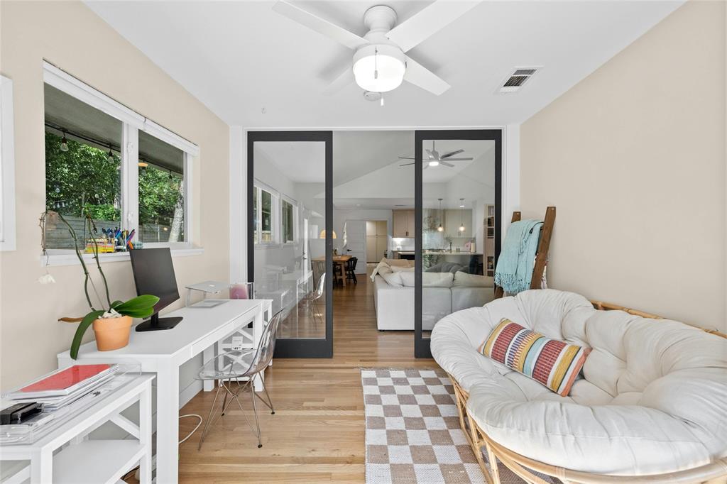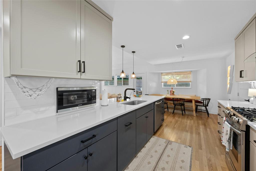 1921 Parkside Ln, Austin, Texas 78745: Welcome to this beautifully remodeled, move-in-ready South Austin home on an oversized .21-acre corner lot with 23 fabulous, well-manicured trees. Updated in 2019, the stunning interior includes an open, gourmet kitchen featuring stainless steel appliances, quartz countertops, and custom cabinetry with a built-in bar/desk area. The large living room includes vaulted ceilings and fabulous natural lighting. The primary bedroom offers a spa-like bathroom with dual sinks, a walk-in shower, and a custom walk-in closet. Additional upgrades include recent hardwood flooring, 5-panel wood doors with matte black hardware, and modern lighting. Energy-efficient features like a Nest Thermostat, tankless water heater, blown-in insulation, dual-paned windows, Pella sliding doors, and whole-home surge protection add value. A versatile flex room with glass-paneled walls can serve as an office, play area, workout space, or a cool home den/library. The large laundry/mudroom with backyard access provides extra storage and could double as a second office/craft space. The wrap-around backyard features multiple patios, mature landscaping, cafe lights, fabulous trees, and a privacy fence, perfect for relaxing or entertaining. A sprinkler system and gutters are also installed. Located steps from Garrison Park, local coffee shops, restaurants, fun beer gardens, and amenities like HEB and Southpark Meadows, this home offers a peaceful setting with easy access to Downtown Austin, the University of Texas, and local schools. Experience modern comfort in a prime South Austin location. Buyer should verify all listing information, including but not limited to school information, taxes, room dimensions, and square footage.