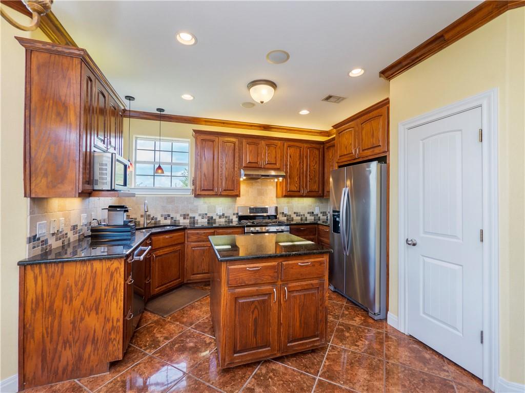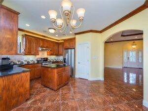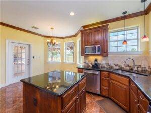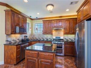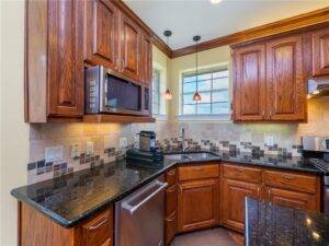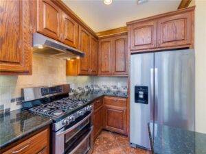 The heart of the home, the kitchen, has been crafted for both function and style. An island layout ensures ample workspace, perfect for entertaining guests or preparing family meals. Stainless steel appliances, a double oven gas range, and granite countertops provide both high-end utility and a modern aesthetic. There’s no shortage of storage space, making organization effortless. Whether you’re a seasoned home chef or just enjoy cooking on occasion, this kitchen is a space that inspires creativity.