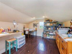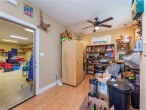 One of the standout features of this property is the large, separate workshop. Designed for flexibility, it can accommodate two or more cars, serve as a work area, or even a personal studio. Two electric garage doors plus a standard entry door make access easy. Inside, a heated/cooled office provides a professional environment for work or creative pursuits, separate from the main home.