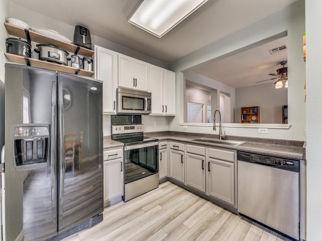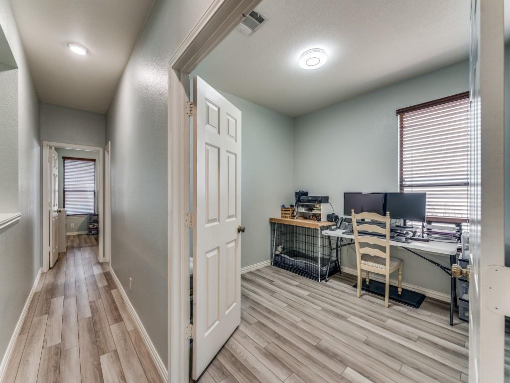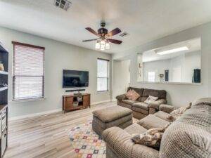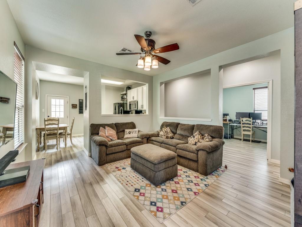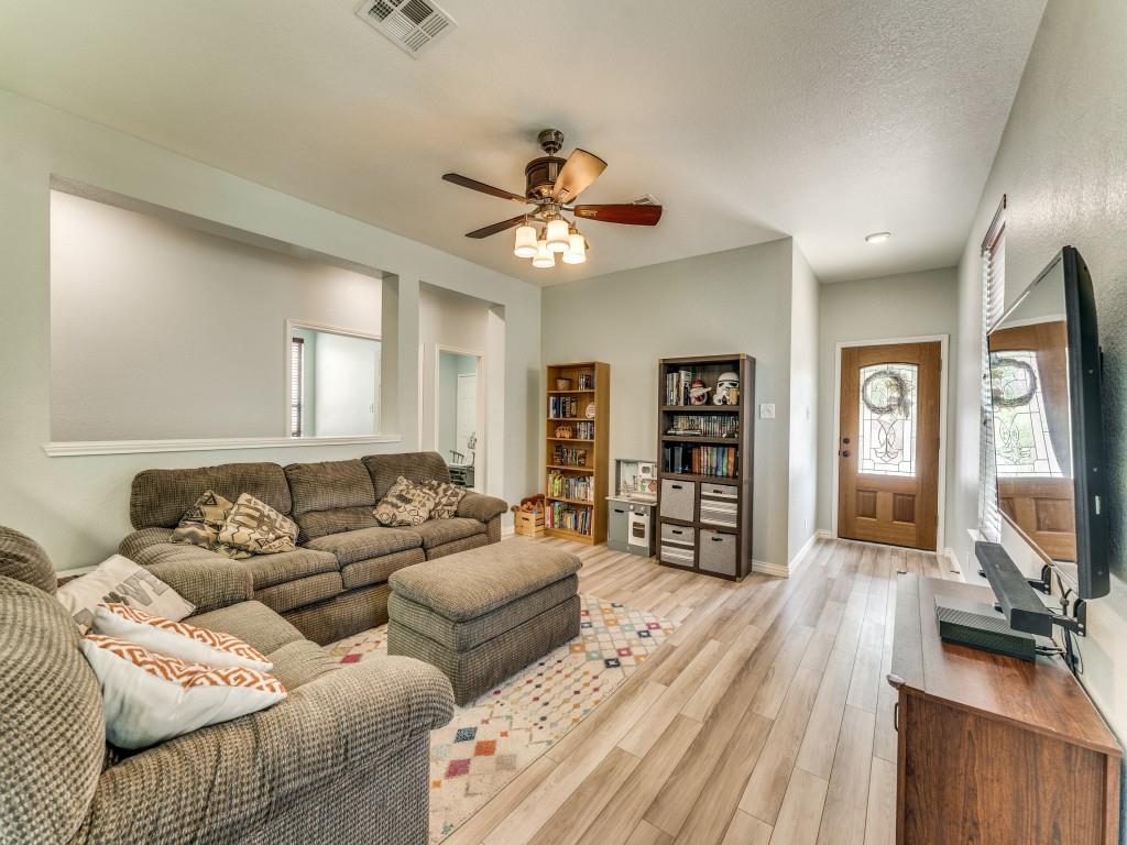 235 Myrtle St, Kyle, Texas 78640 Welcome home to comfort and style! This four bedroom, two bath, 2 car garage home has an estimated 1,359 square feet and is full of thoughtful touches. Upon entering, you’ll appreciate the open floor plan, with a generous living area flowing into the kitchen, where you’ll find a stainless steel oven, microwave and dishwasher, two-toned cabinets with modern hardware, and a cozy breakfast area. Don’t overlook the large farm-style sink with gooseneck kitchen faucet that is sure to become one of your favorite things in your new home. As you step beyond the living area, you will notice that there is no carpet anywhere! When you move around your new home, your path will be lit by upgraded LED overhead lights in the hallway, office and bathrooms. Both bathrooms feature stylish framed vanity mirrors and updated plumbing fixtures. Peek into the bedroom closets and find shelving perfect for storing everything you need. And, if you don’t need a fourth bedroom, you can repurpose the use of this space to work from home office, craft room, or just as a quiet space to get away from it all. Whether you’re entertaining in the living area or relaxing in the primary suite, you’ll appreciate the comfort of an efficient air conditioning system and the thoughtful updates to your new home. The HVAC outside coils were replaced in 2022, and the interior unit was replaced in 2021. Your new home is situated in the back of the Waterleaf neighborhood and is convenient for commuting to Austin or any part of Central Texas.