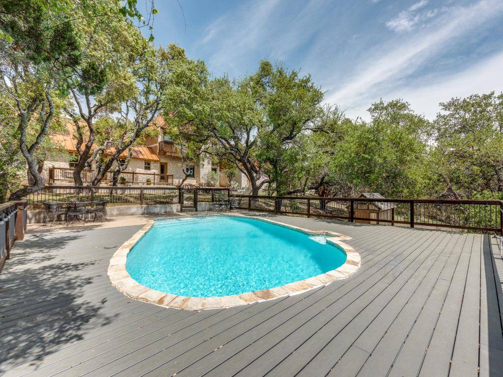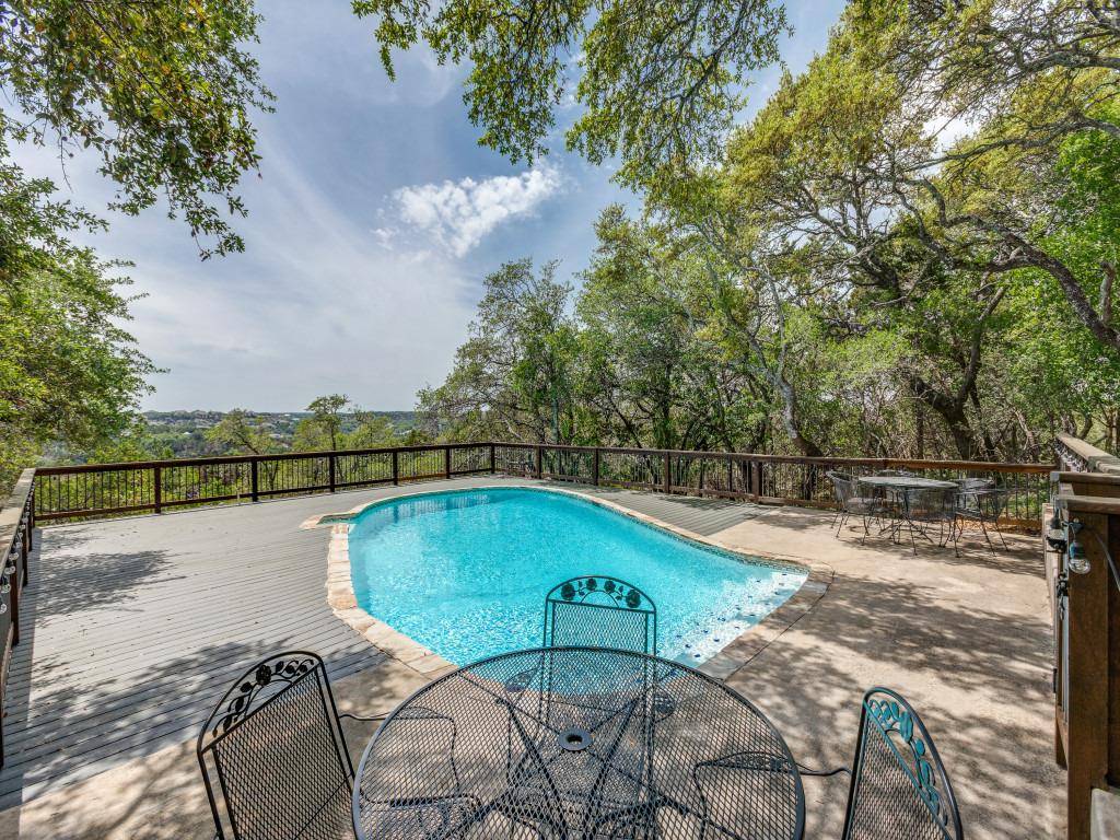 Priced $10k below recent appraisal! Experience the charm of Hill Country living. This home offers breathtaking views, a private pool shaded by mature oaks, and peaceful outdoor spaces perfect for relaxing or entertaining under the stars. Inside, enjoy the flexibility of two primary suites—one on each level—both with views of the backyard and pool. The home features two spacious living areas with custom solid wood built-ins, providing room for all your needs. Enjoy year-round comfort and peace of mind a whole-home backup generator powered by an on-site propane tank, a durable standing seam metal roof, hard surface flooring throughout, and a private on-site water well in addition to city water. Don't miss this rare blend of scenic beauty, functional design, and total tranquility!